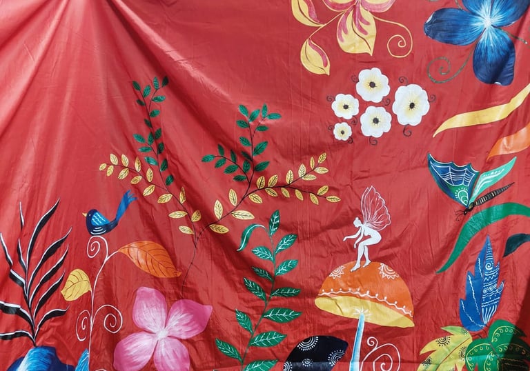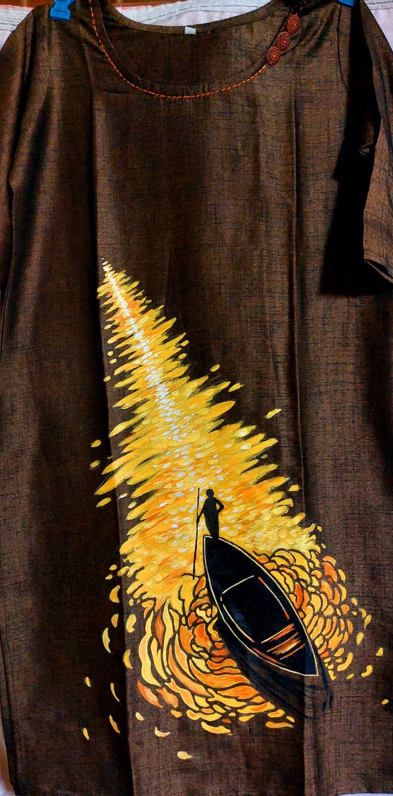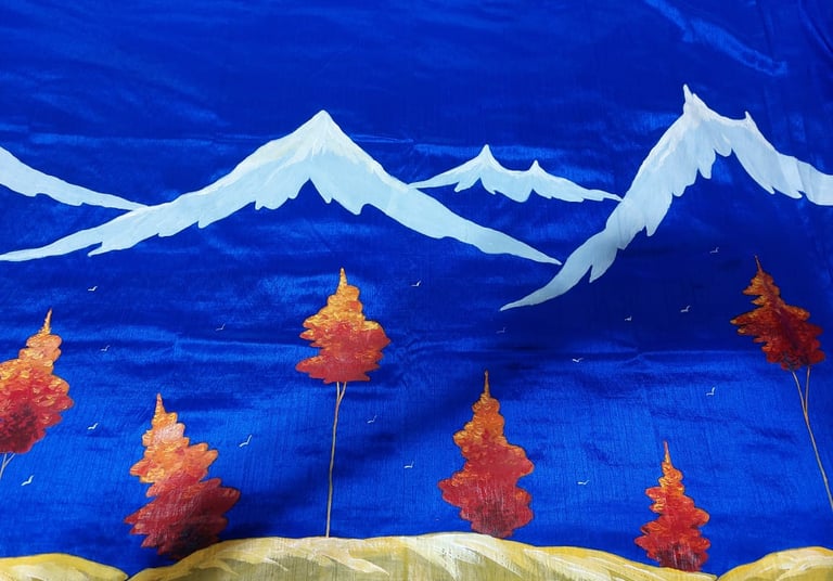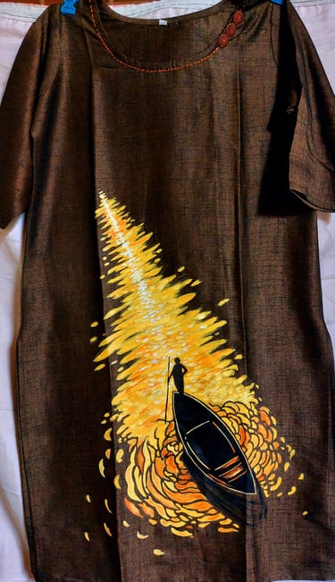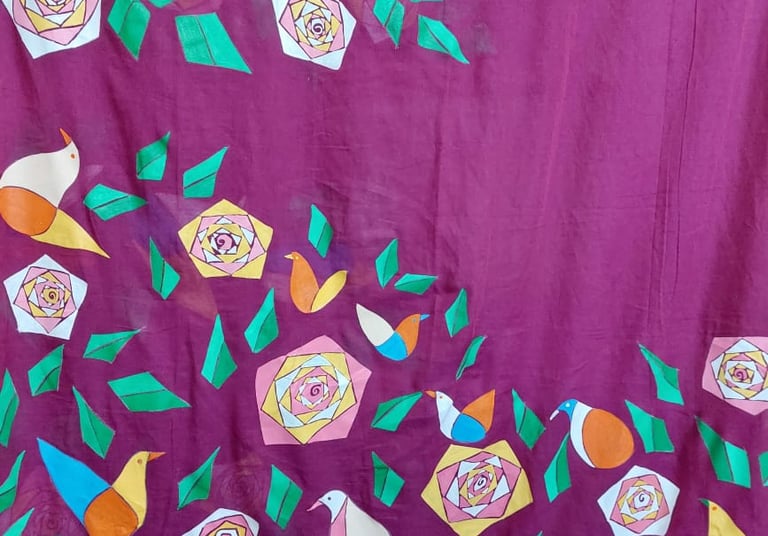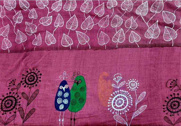 Ray's 100th birth ceremony on khadi cotton. Soft fabrics adorned with Jayati’s unique brush strokes.